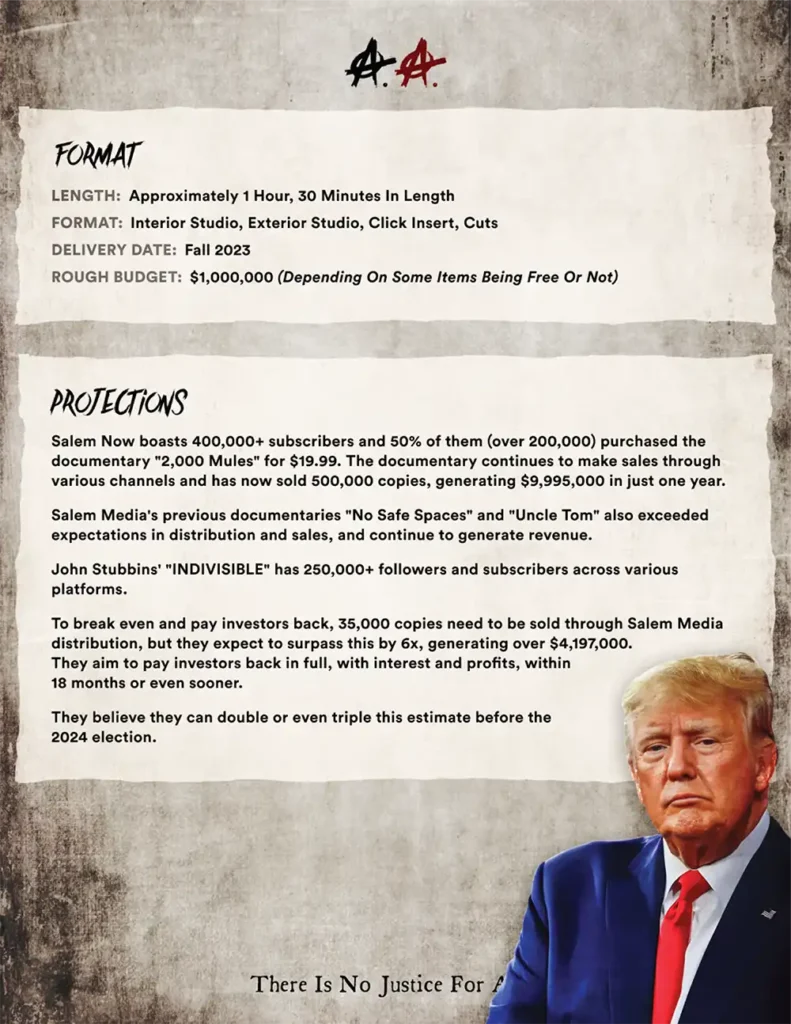 $25K or more, the INVESTORS get first money out (their investment back) and then profits/ROI of up to 40% depending on their total investment, plus credit in the film and special thank you.